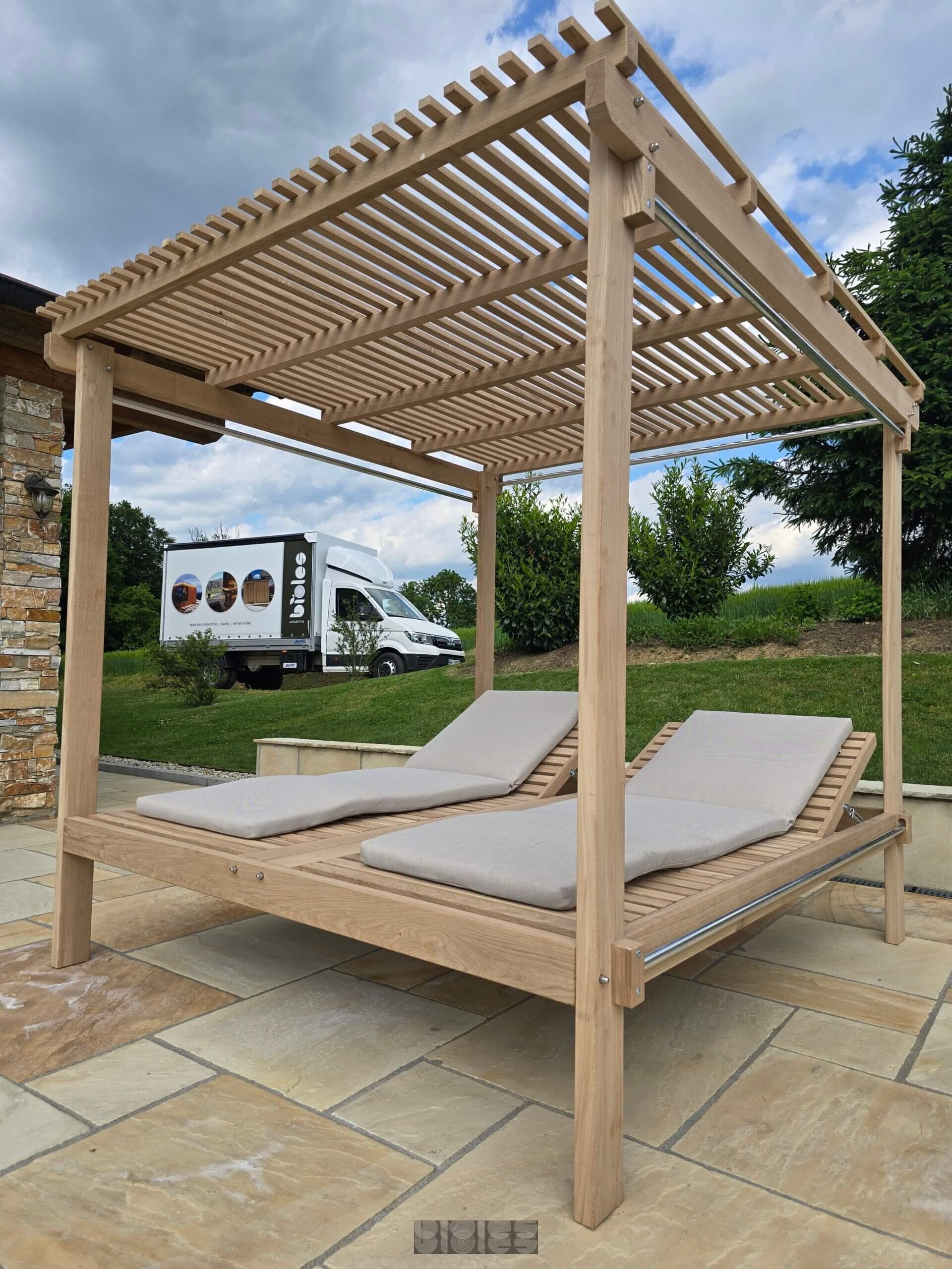 Dvojni ležalnik z nadstreškom – eleganca, udobje in funkcionalnost na prostem