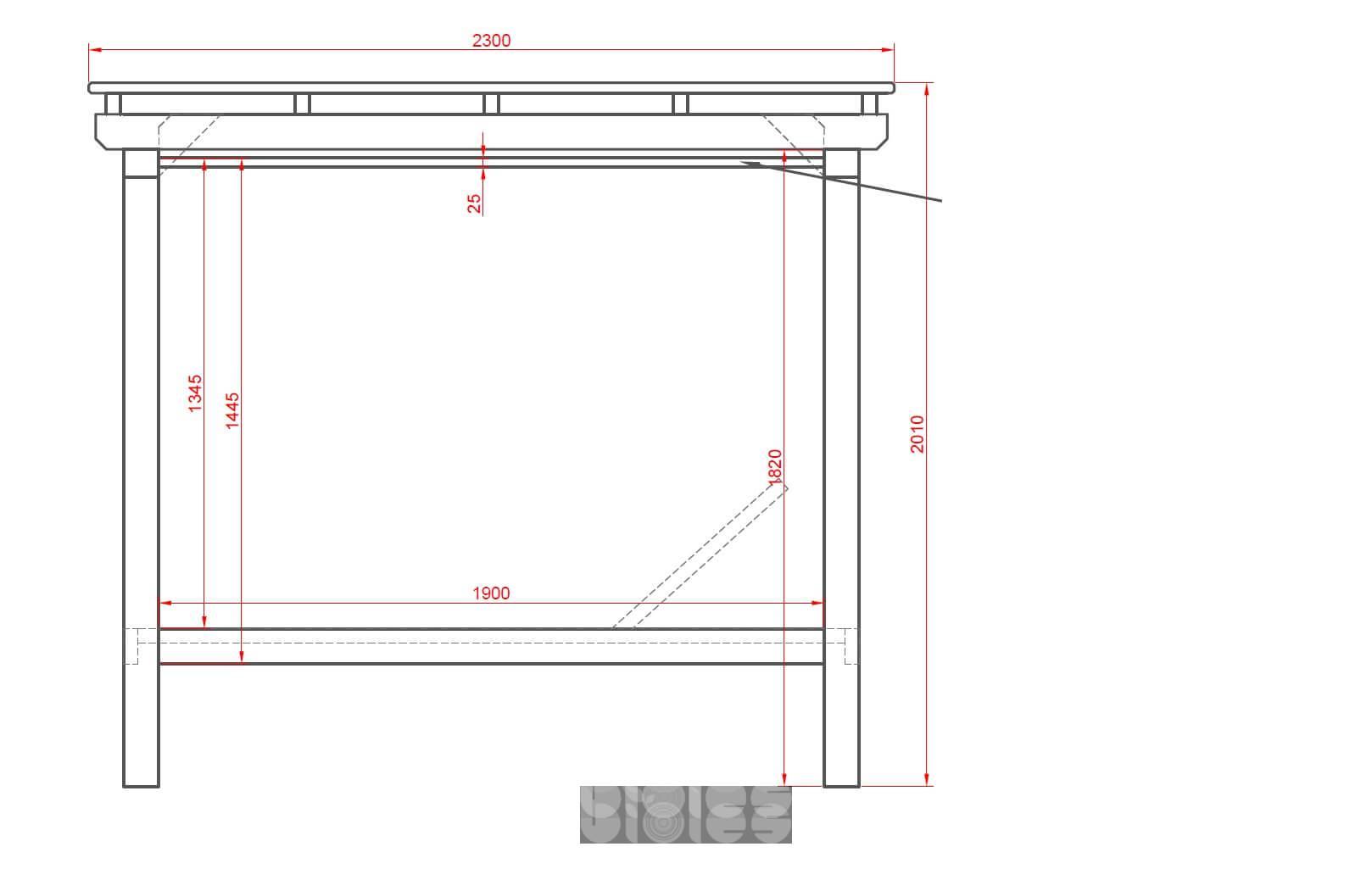 Pergola: 230 × 190 × 210 cm (D × Š × V)
