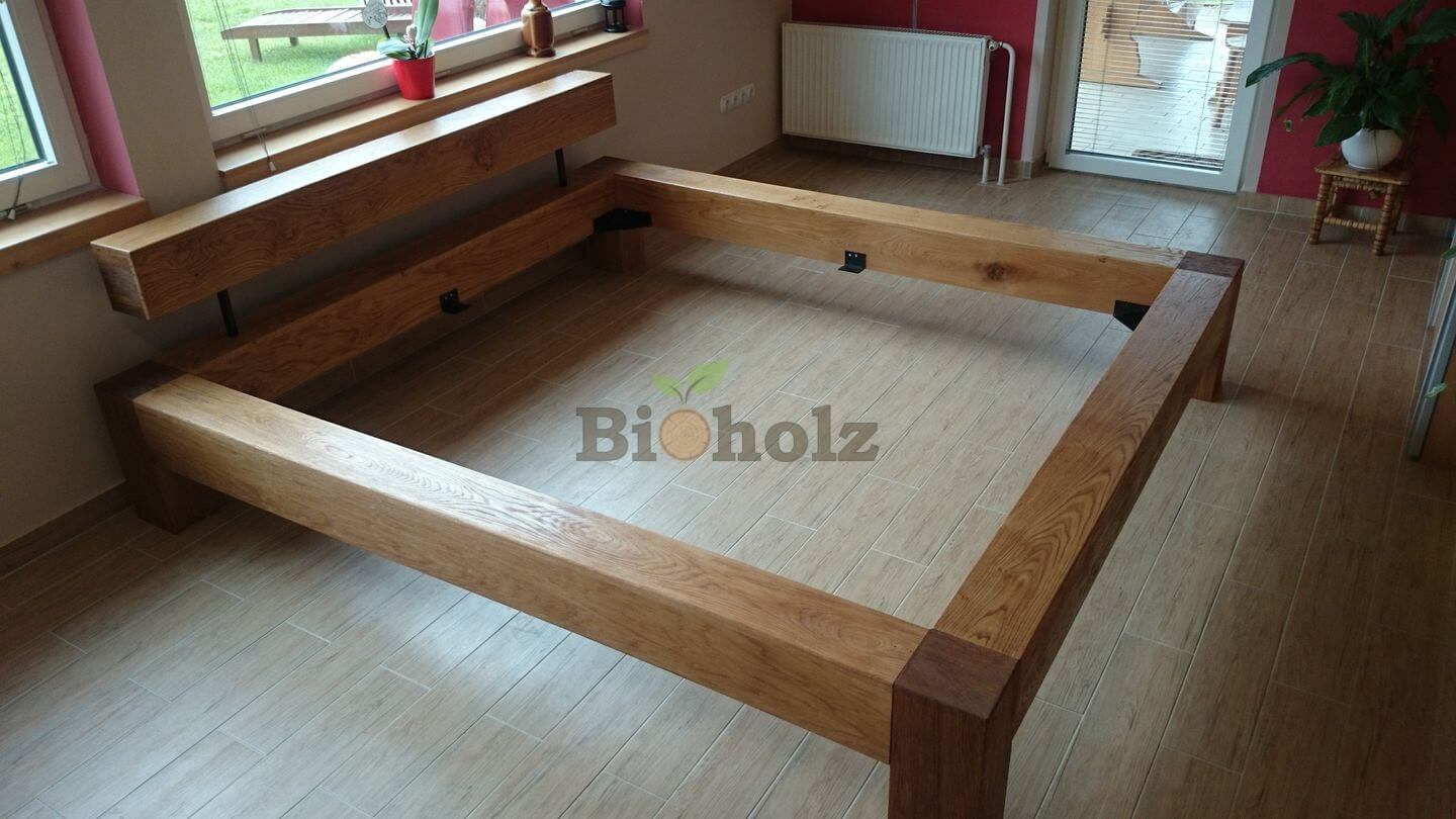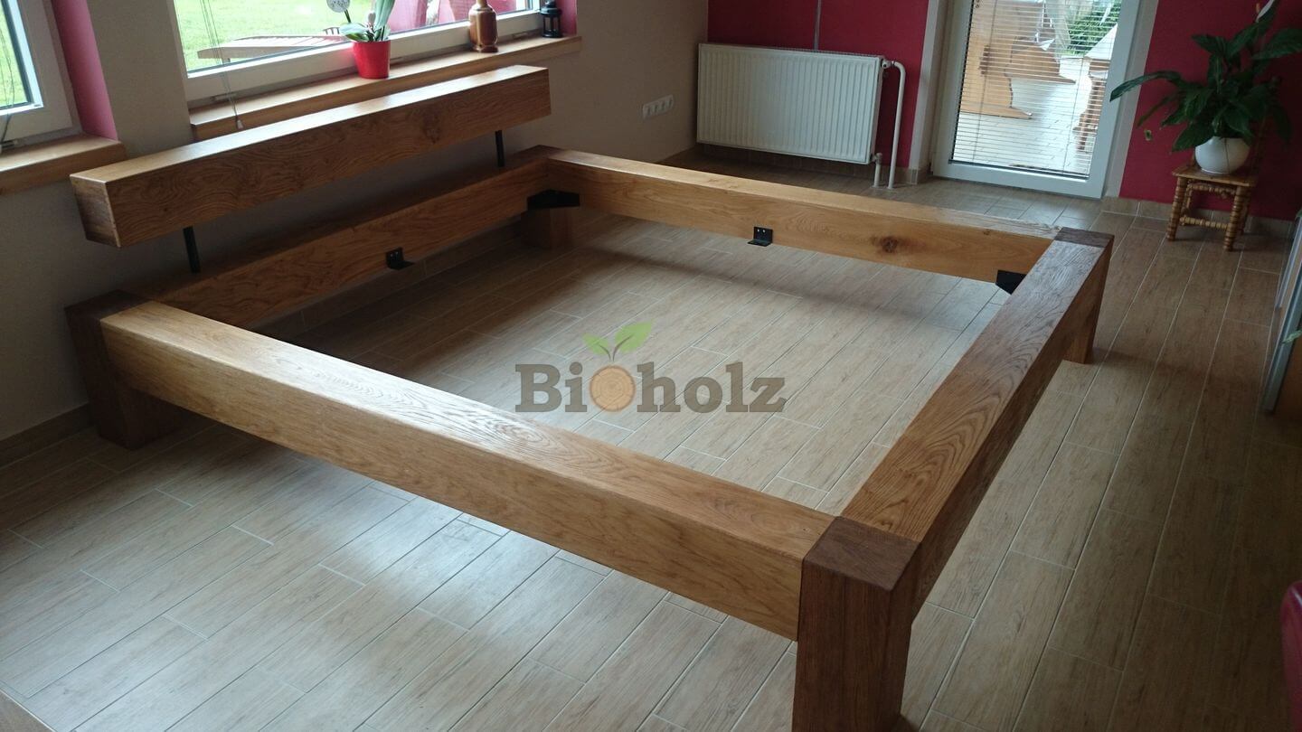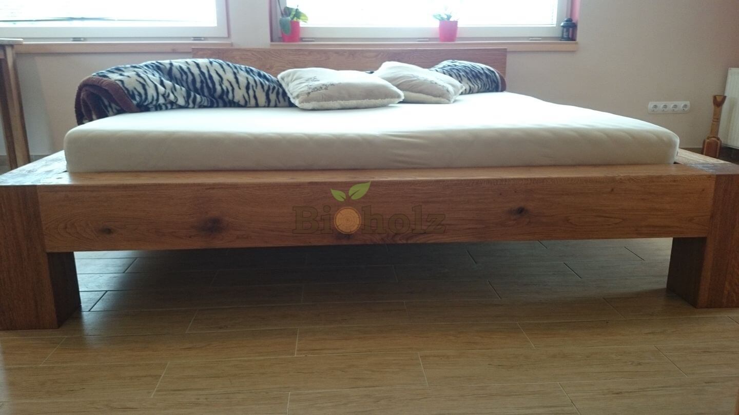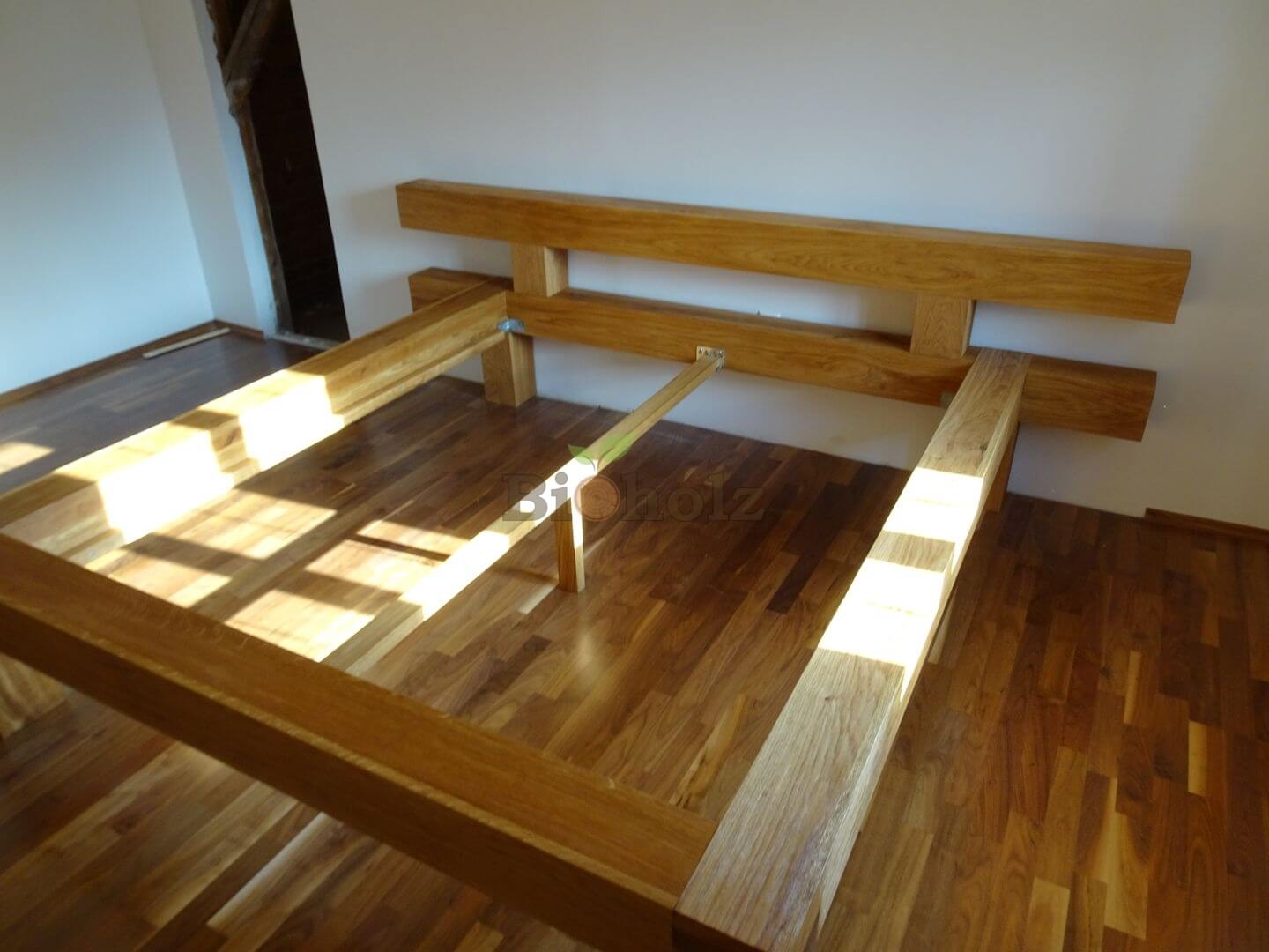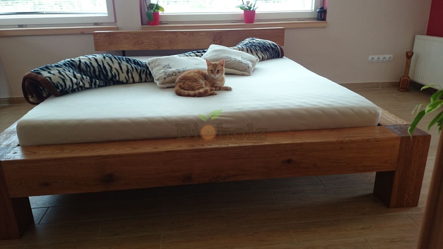 Ta masivna postelja je izdelana iz lesa divjega hrasta, je brušena in obdelana z naravnim oljem. Gre za povsem naravno olje, ki lesu daje zaradi dodatka čebeljega voska posebej čudovit lesk. Hvala čebelarjem in ekološkim pridelovalcem hrane iz naše regije iz naše regije za ta izjemen naravni izdelek!