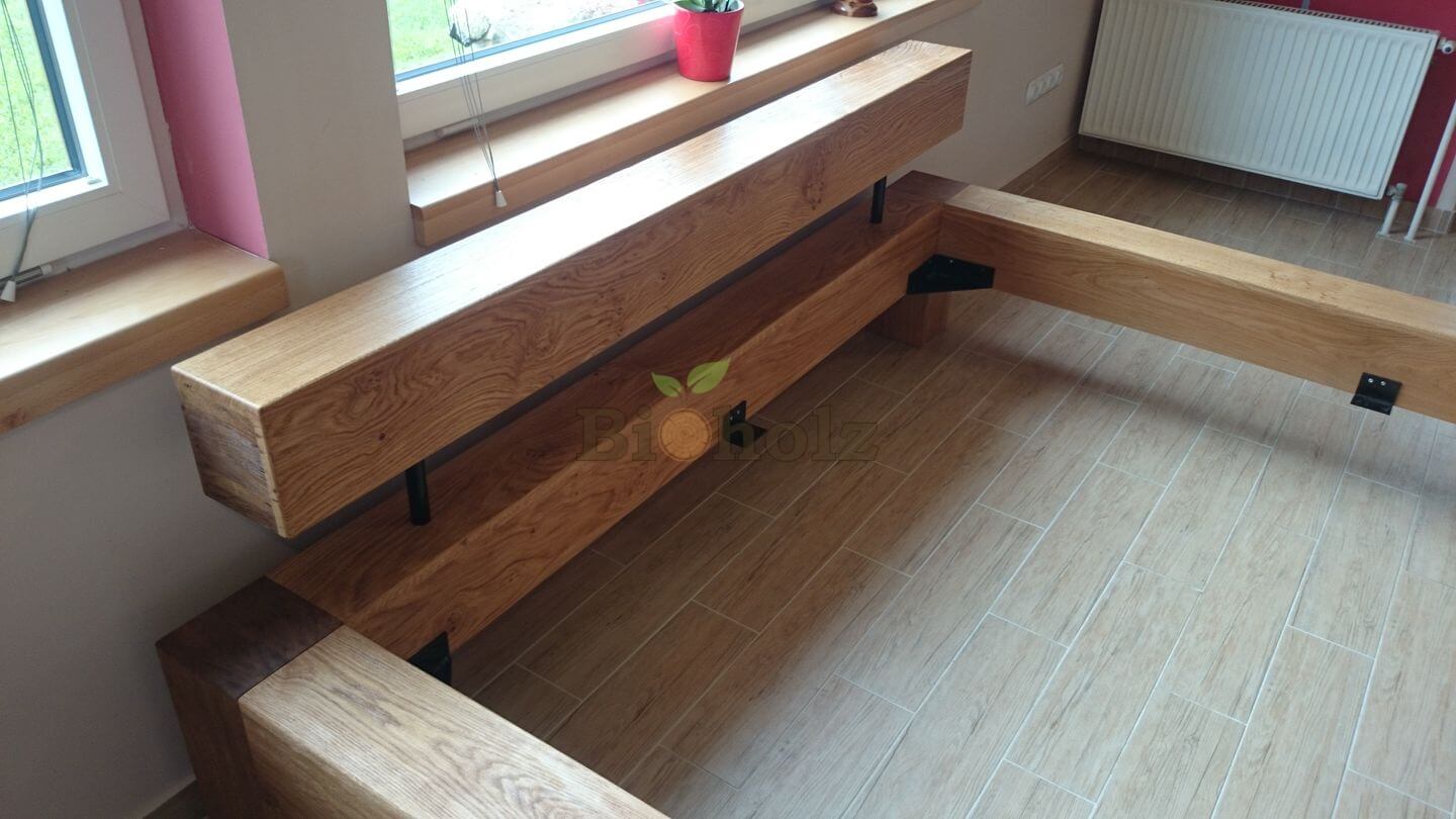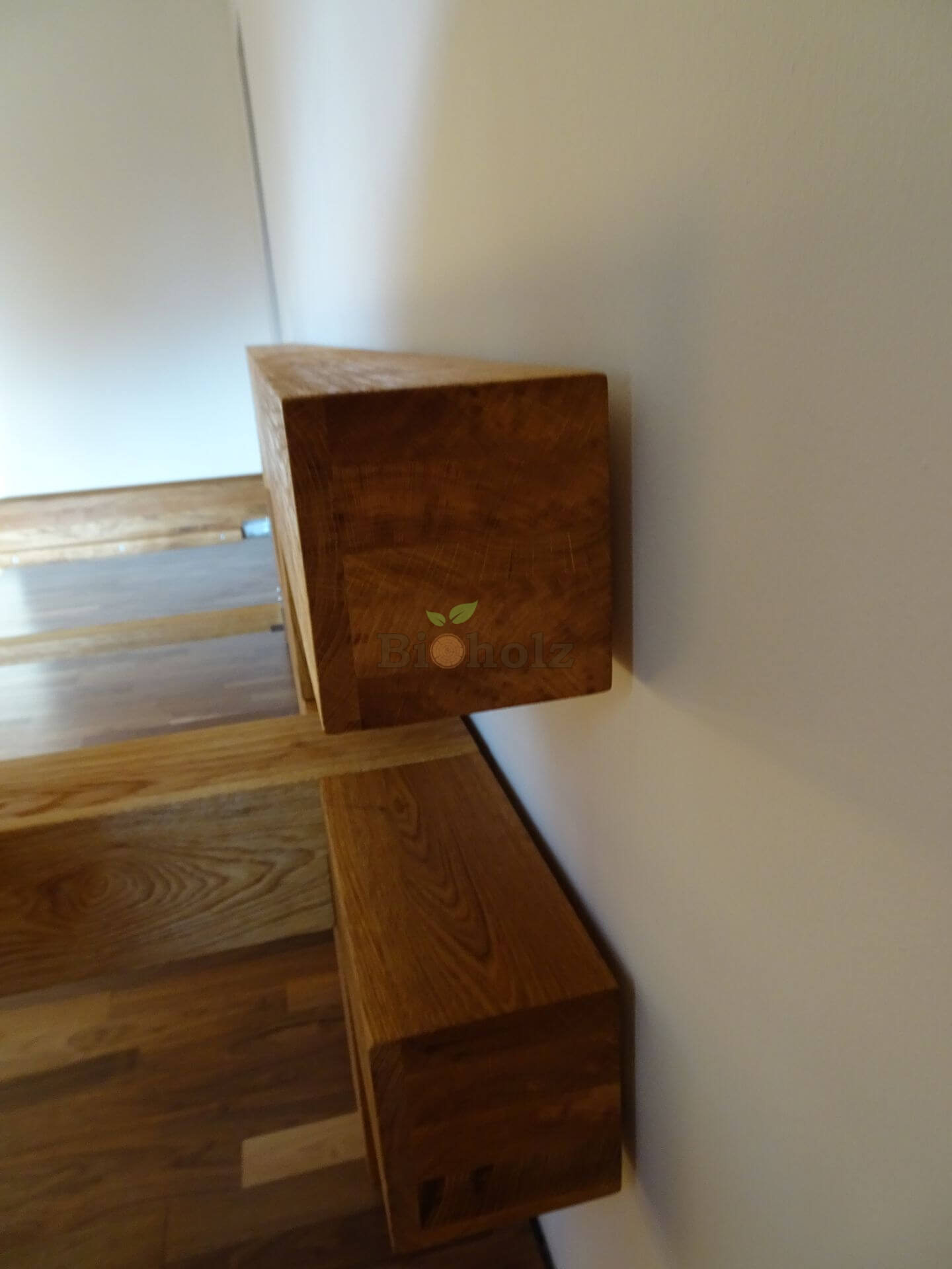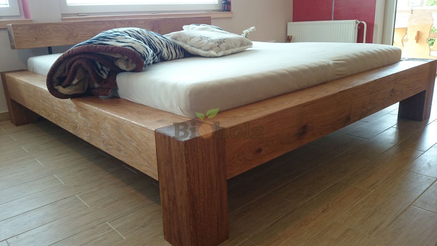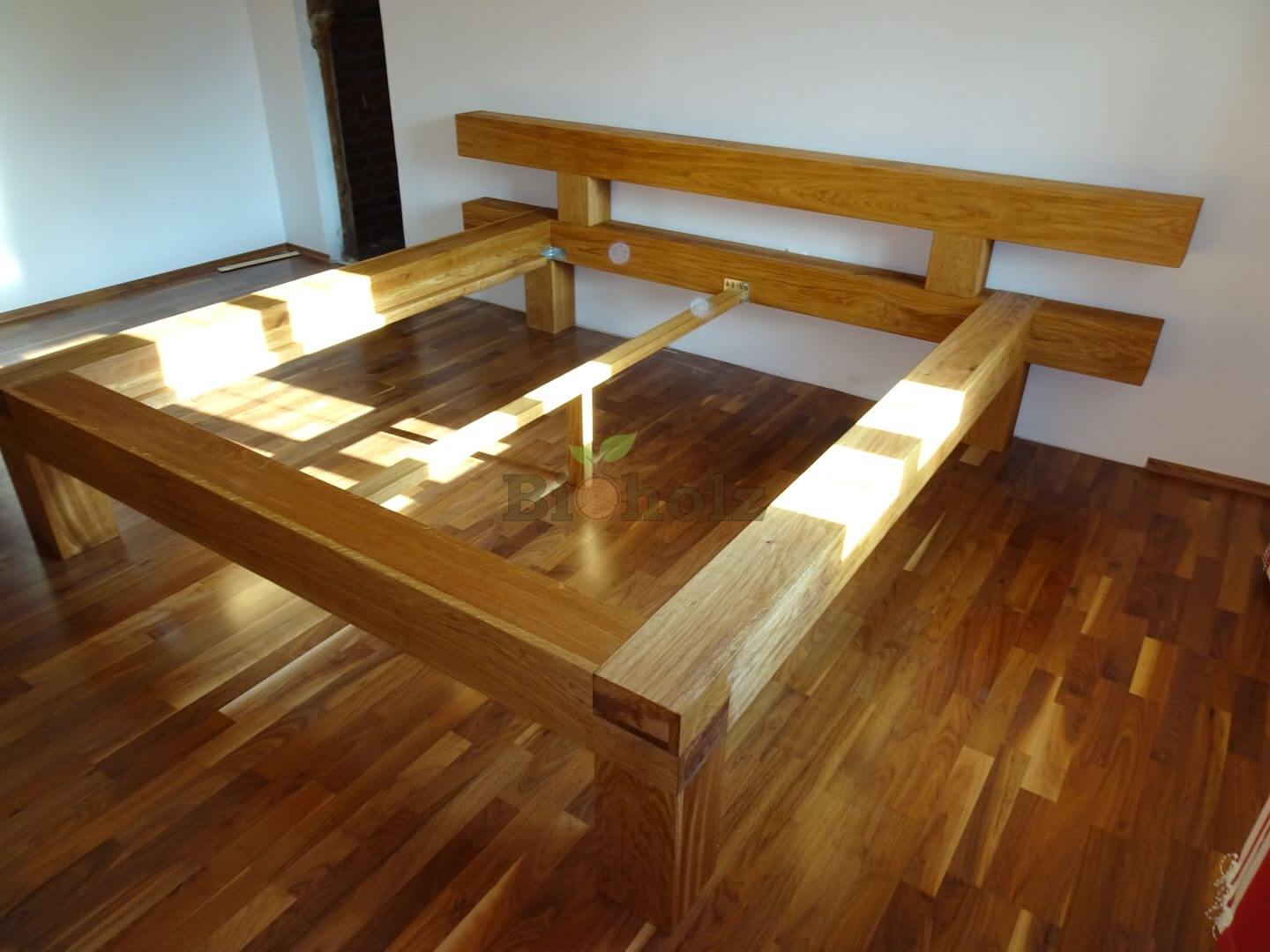 Ta masivna postelja je izdelana iz lesa divjega hrasta, je brušena in obdelana z naravnim oljem. Gre za povsem naravno olje, ki lesu daje zaradi dodatka čebeljega voska posebej čudovit lesk. Hvala čebelarjem in ekološkim pridelovalcem hrane iz naše regije iz naše regije za ta izjemen naravni izdelek!