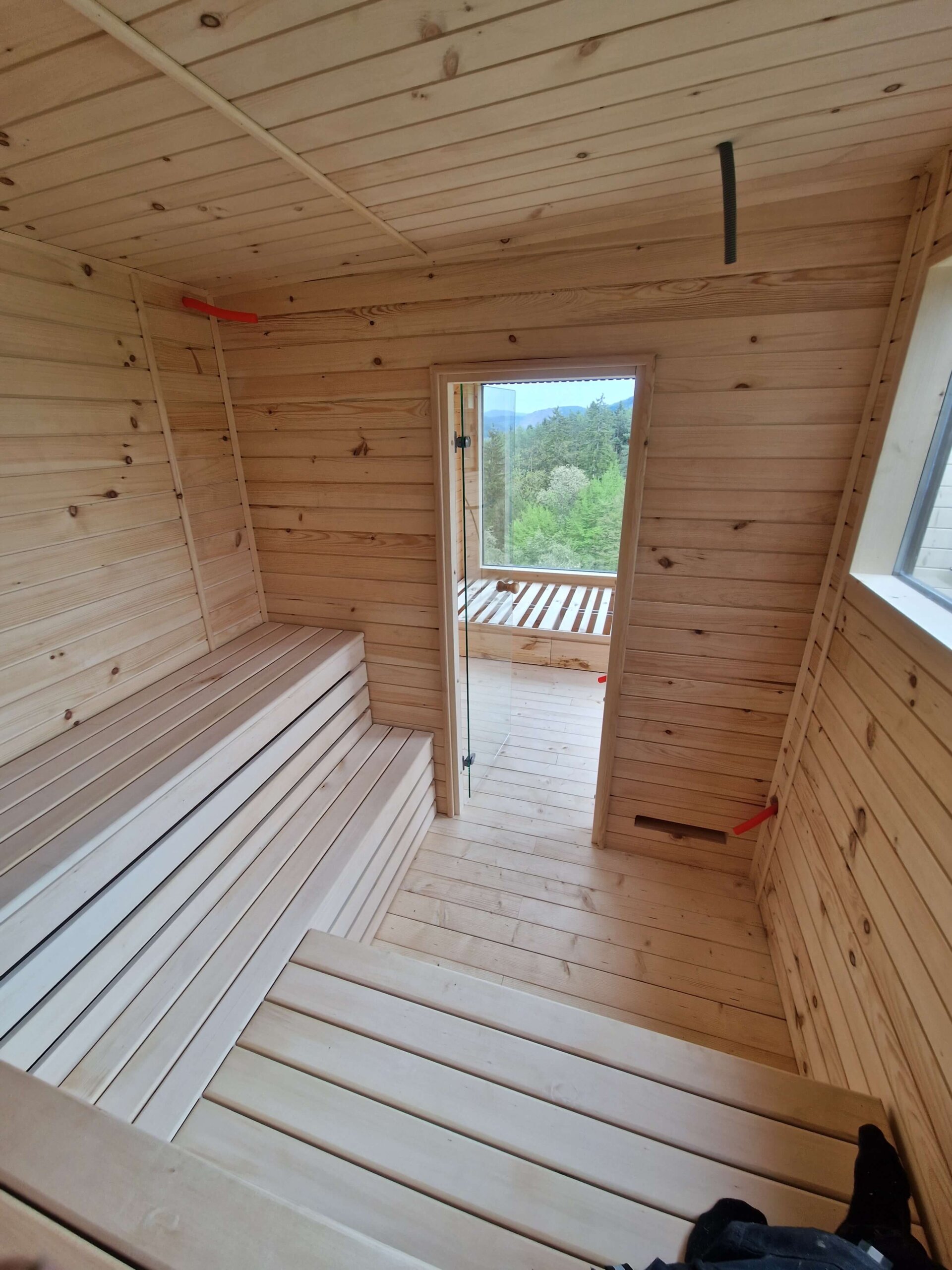Vmesne stene so izolirane in znotraj je smrekov les.