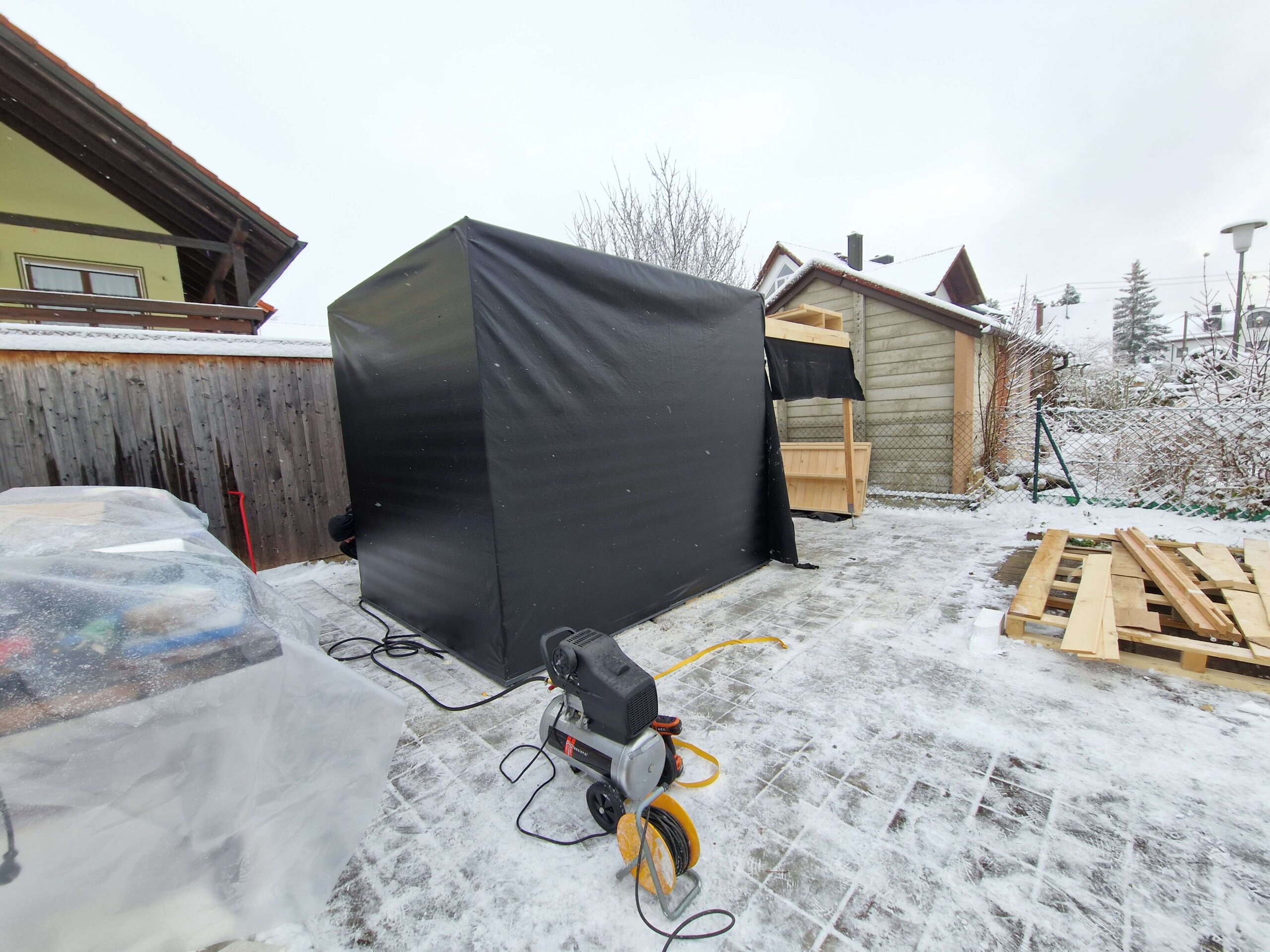 Vrtna hiša na fotografiji je velika 240 cm x 450 cm.