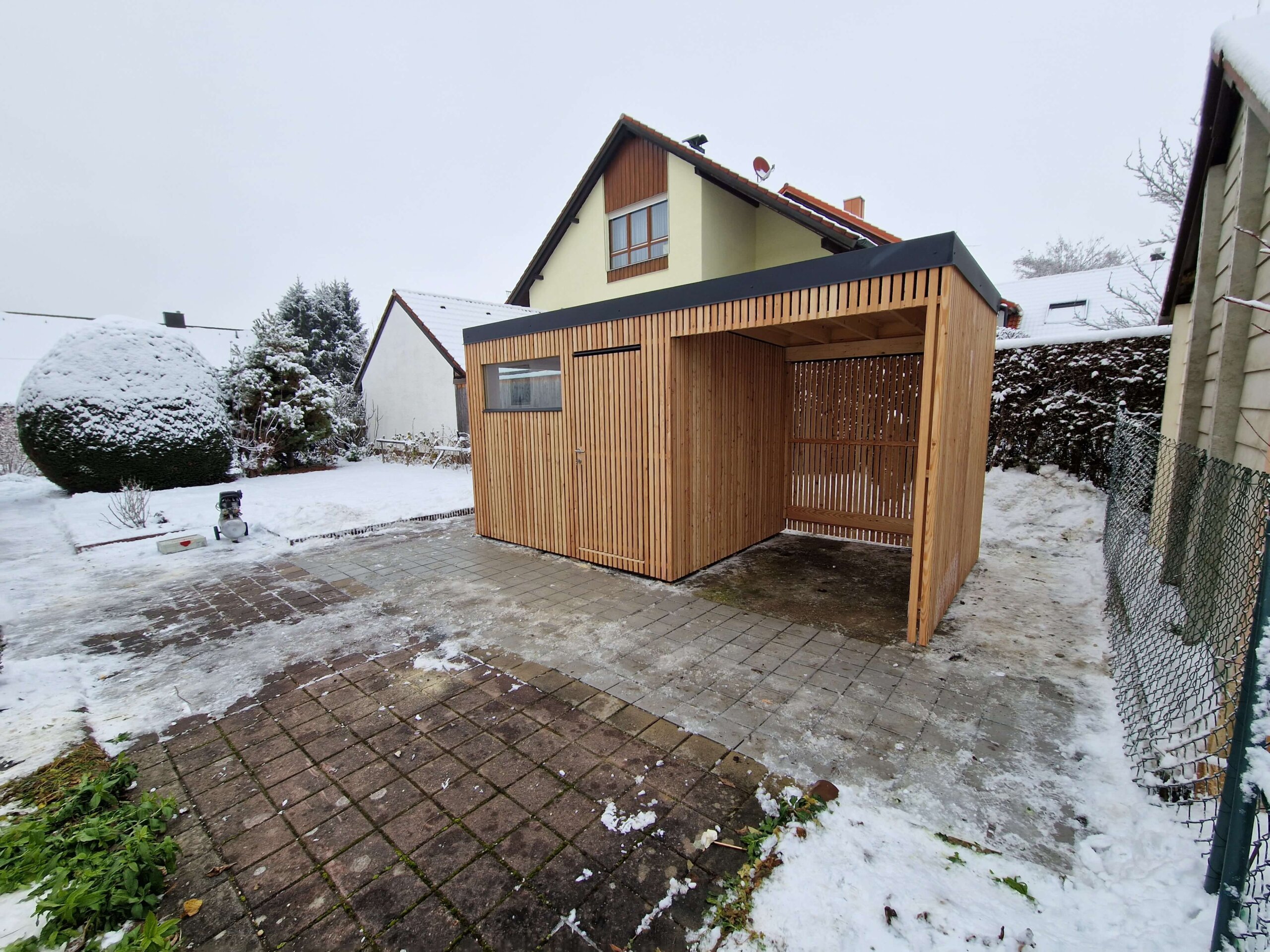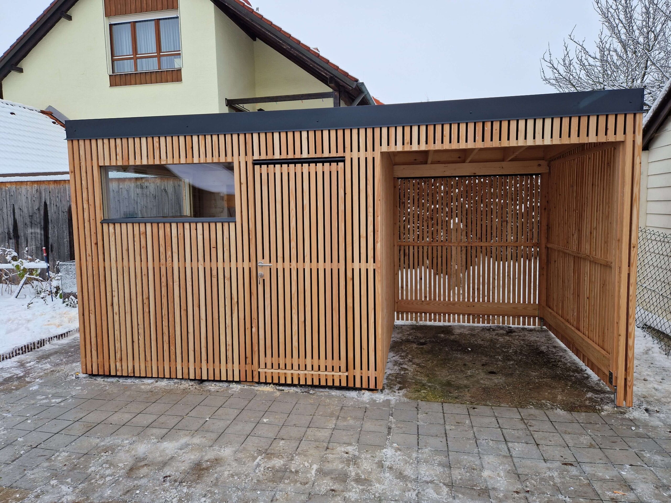 Zunanja fasada je iz macesna.